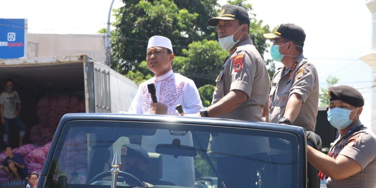 Guntur Laupe bersama jajarannya menggandeng ustaz kondang Makassar, Das`ad Latif keliling Kota Makassar dengan menggunakan mobil jeep Brimob.