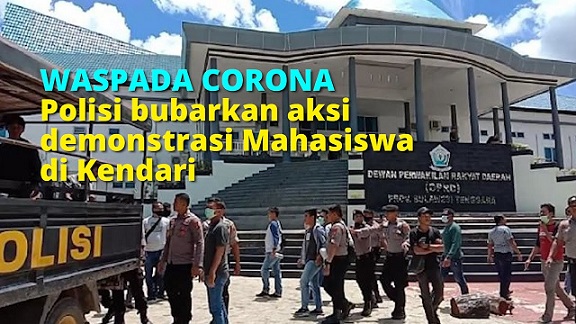 INDONEWS.ID -- Kepolisian Resor Kendari terpaksa membubarkan aksi demonstrasi belasan mahasiswa yang digelar di Kantor DPRD Sulawesi Tenggara (Sultra), Senin (23/3). Selain dibubarkan, mahasiswa yang berjumlah kurang lebih 12 orang itu diamankan ke mobil polisi, lalu dibawa keluar dari area kantor DPRD Sultra. Kepala Bagian Operasi Polres Kendari, AKP Adri Setiawan menjelaskan, pembubaran demonstrasi itu sesuai maklumat Kapolri, Jenderal Pol Idham Azis, tentang kepatuhan terhadap kebijakan pemerintah dalam penanganan penyebaran Virus Corona atau Covid-19 yang diterbitkan sejak Kamis (19/3). Dalam maklumat itu, kata Adri, juga dijelaskan bahwa warga dibatasi untuk beraktivitas yang sifatnya mengumpulkan massa, salah satu yang dibatasi adalah aksi demonstrasi.