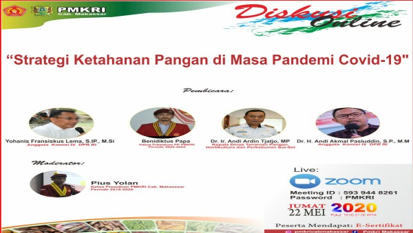 Ketua Presidium PMKRI Cabang Makassar, Pius Yolan selaku moderator diskusi menerangkan, kegiatan berhasil dilaksanakan setelah melalui proses kajian panjang secara internal. Selain itu, PMKRI Makassar ingin melihat sejauhmana pemerintah berusaha menjaga pasokan pangan selama masa krisis bencana non alam ini terjadi.