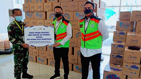 Jakarta, INDONEWS.ID --- PT Jakarta Industrial Estate Pulogadung (JIEP) memberi bantuan 2000 kardus air mineral (air minum dalam kemasan) kepada tenaga medis di Rumah Sakit Darurat Covid-19 Wisma Atlet Kemayoran, Jakarta, Senin (5/10). Bantuan tersebut merupakan bagian dari program Bina Lingkungan dan Corporate Social Responsibility dari perusahaan milik pemerintah yang bergerak dalam bidang pengembang dan pengelola Kawasan Industri Pulogadung tersebut.