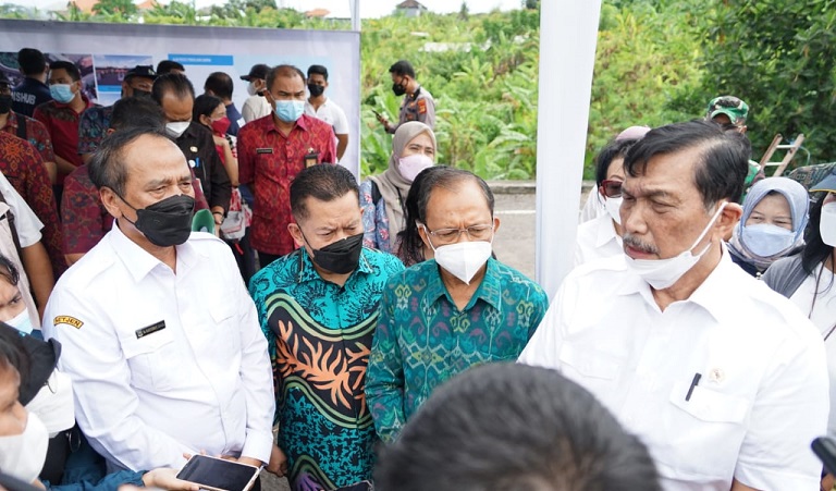 Denpasar, INDONEWS.ID --- Menteri Koordinator Bidang Kemaritiman dan Investasi (Menkomarinves) Luhut Binsar Pandjaitan bersama Tim Kementerian Dalam Negeri (Kemendagri) meninjau Tempat Pengolahan Sampah Terpadu (TPST) Padang Sambian di Denpasar, Bali, Jumat (25/2/2022). Kunjungan itu untuk meninjau perkembangan pembangunan TPST tersebut.