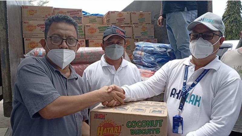 Bantuan berupa beras, air mineral, mie instan, biskuit, terpal selimut diberikan langsung Manager PTPN VI, Ophir Lukman Arif.