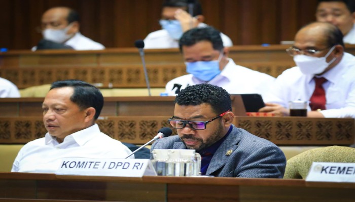 Jakarta, INDONEWS.ID - Wakil Ketua I Komite I DPD RI Dr. Filep Wamafma, menyampaikan Pandangan Komite I terhadap 5 RUU tentang Provinsi yaitu Provinsi Sumatera Barat, Riau, Jambi, Nusa Tenggara Barat, dan Nusa Tenggara Timur dalam Rapat Kerja Tingkat I bersama DPR RI dan pemerintah di Kompleks Parlemen, Jakarta hari ini, Selasa (31/5/2022).