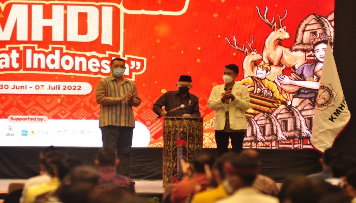 Jakarta, INDONEWS.ID - Rapat Koordinasi Nasional (Rakornas) ke XV, Kesatuan Mahasiswa Hindu Dharma Indonesia (KMHDI) secara resmi dibuka oleh Wakil Presiden, Ma`aruf Amin, bertempat di Prime Part, Lombok, Kamis (30/06/2022).
