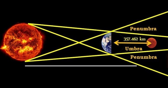 Gerhana bulan total terjadi saat posisi bulan-matahari-bumi berada pada posisi sejajar. Hal ini membuat bulan akan masuk ke umbra (bayangan inti) bumi.