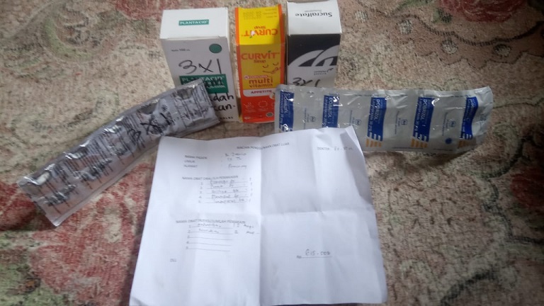 Ketiga obat asam lambung itu, bahkan tak sampai harga Rp 100 ribu. Dua obat lagi yakni Histigo untuk obat pusing serta multi vitamin seperti Curvit penambah nafsu makan dijual seharga Rp 33 ribu ukuran 60 mili.