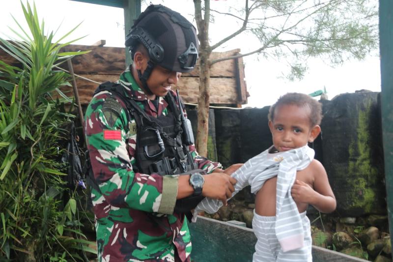 Letak pos yang dekat masyarakat, menjadi tempat favorit bagi anak-anak untuk bermain ke Pos Kotis yang terletak di tengah Kota Kenyam, Kabupaten Nduga, seperti yang terjadi pada hari ini, seorang anak laki-laki bernama Matius Gwijangge mendapat hadiah baju baru yang langsung di pakaikan oleh personil Satgas Yonif MR 411/Pandawa Kostrad.