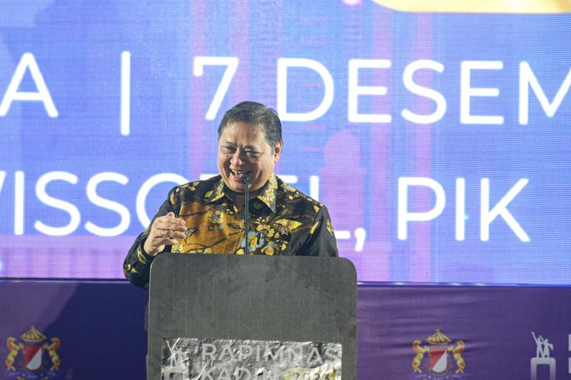 Perekonomian Airlangga Hartarto dalam Rapat Pimpinan Nasional Kamar Dagang dan Industri Indonesia (KADIN) 2023 yang bertema “Pemilu Damai, Ekonomi Tumbuh, Menuju Indonesia Emas 2045” di Jakarta, Kamis (7/12).