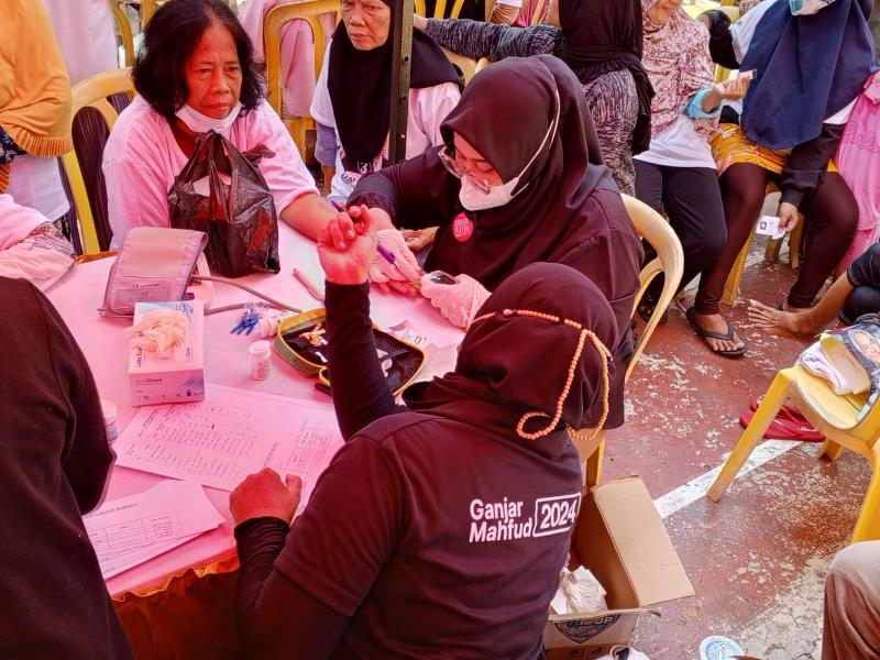 "Hari ini kami memberikan layanan kesehatan bagi warga Sukmajaya, Depok, kesehatan masyarakat adalah yang utama. Selain kesehatan kami juga mensosialisasikan Ganjar-Mahfud dengan memberikan stiker Dan kaos kalau masyarakat diberi layanan kesehatan", ungkapnya.