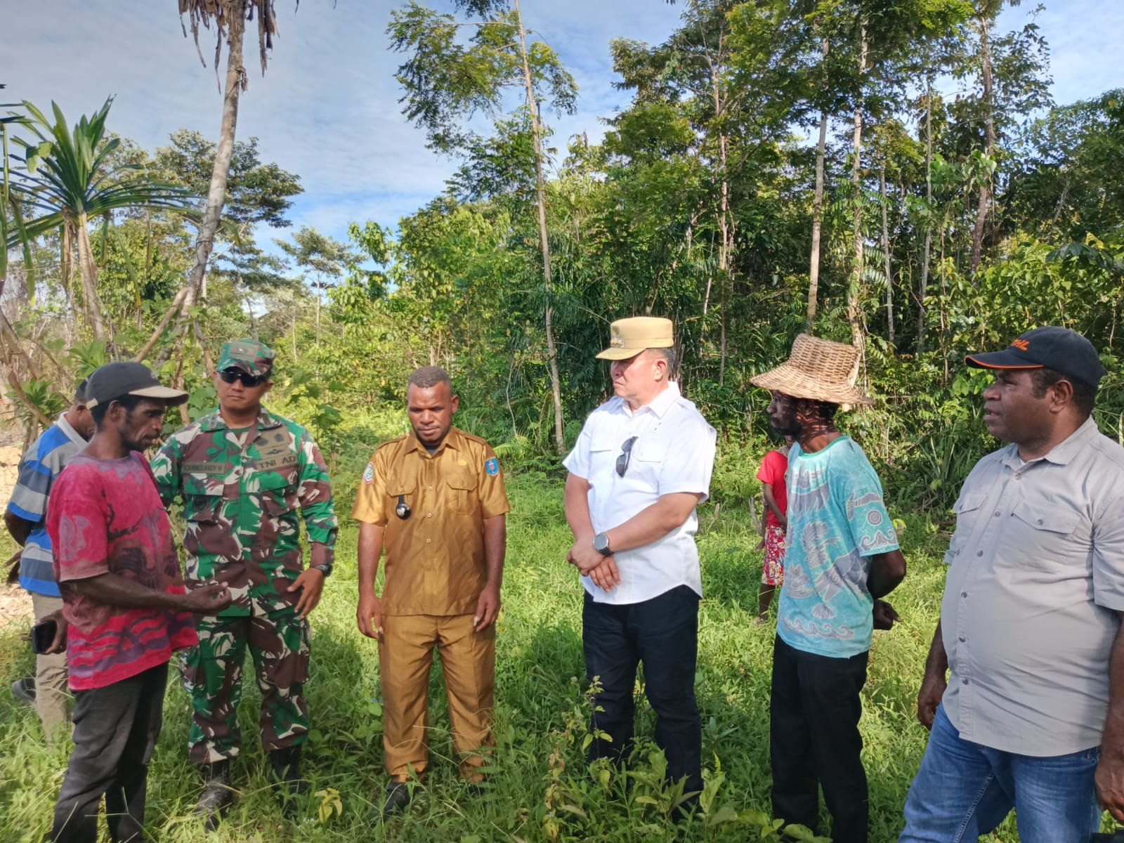 Kampung Sowan, INDONEWS.ID - Dalam kerangka program TNI Manunggal Membangun Desa (TMMD) ke-119, Penjabat (Pj) Bupati Maybrat, bersama Komandan Distrik Militer (Dandim) 1809 dan Kepala Dinas Pertanian, melakukan peninjauan ke perkebunan rica yang dijalankan oleh kelompok tani di Kampung Sowan.