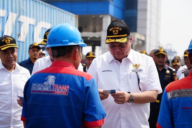 Didampingi oleh Menteri Keuangan Sri Mulyani Indrawati dan Wakil Menteri Perdagangan Jerry Sambuaga, pada kesempatan tersebut Menko Airlangga juga melihat secara langsung pengeluaran party barang sebanyak 5 kontainer komoditas besi baja.