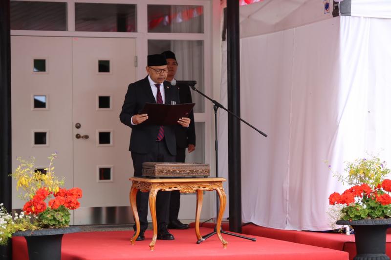Pada amanat Pembina Upacara, Dubes RI Stockholm untuk Kerajaan Swedia dan Republik Latvia, Kamapradipta Isnomo menjelaskan bahwa tema besar peringatan HUT RI kali ini ‘Nusantara Baru Indonesia Maju’ menggambarkan transisi dan perubahan Indonesia yang lebih baik guna menuju Indonesia emas tahun 2045. Dalam konteks hubungan bilateral dengan Swedia, tahun ini merupakan tahun persiapan perayaan 75 tahun hubungan bilateral RI-Swedia yang jatuh pada tahun depan. Dubes RI juga mengajak masyarakat Indonesia di Swedia untuk turut serta berpartisipasi dan berinisiatif untuk meramaikan perayaan hubungan baik Indonesia dan Swedia.