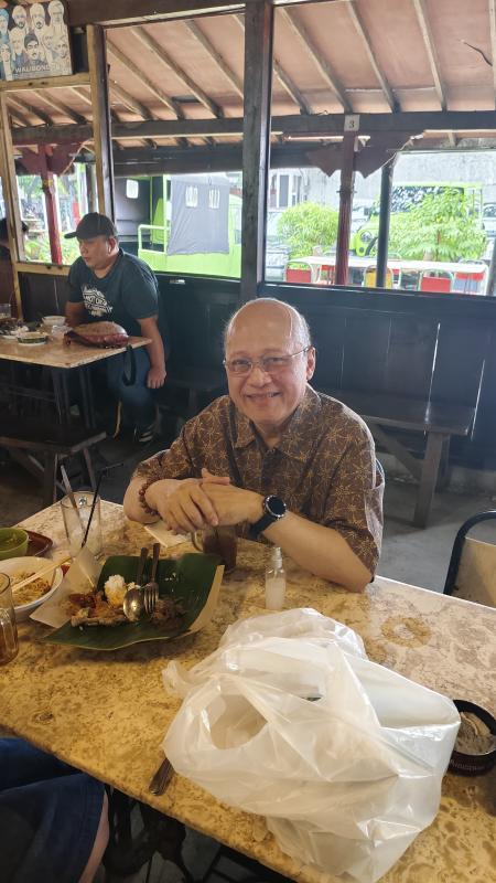 Lanjutnya lagi, " biasanya gudeg itu kalau kami makan di Solo itu habis tapi kami masih belum kenyang, tetapi ini Makanan belum habis kamu sudah kenyang, porsinya besar dan enak sekali".