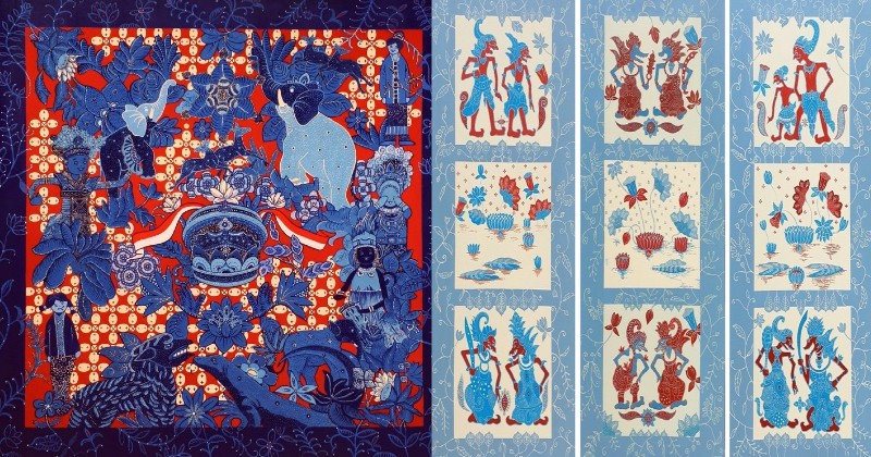 Disamping menggabungkan berbagai elemen batik, saya menghadirkan serial lukisan, yang idenya bersumber dari flora & fauna, yang diabstraksi seperti yang kita jumpai dalam karya-karya batik tradisi, tetapi dengan komposisi tunggal, tanpa motif berulang seperti halnya dalam batik tradisional.