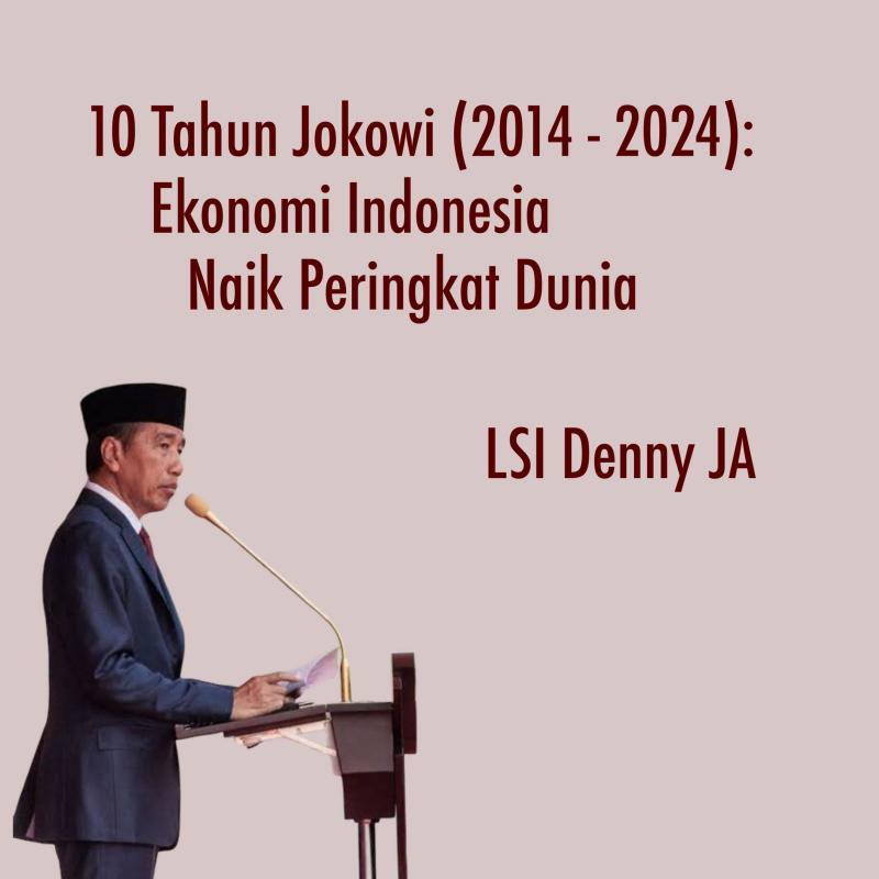 Dengan mengolah data dari World Bank, LSI Denny JA menyimpulkan bahwa selama 10 Tahun Jokowi (2014-2024), ekonomi Indonesia tidak hanya tumbuh, tetapi juga naik peringkat dunia.