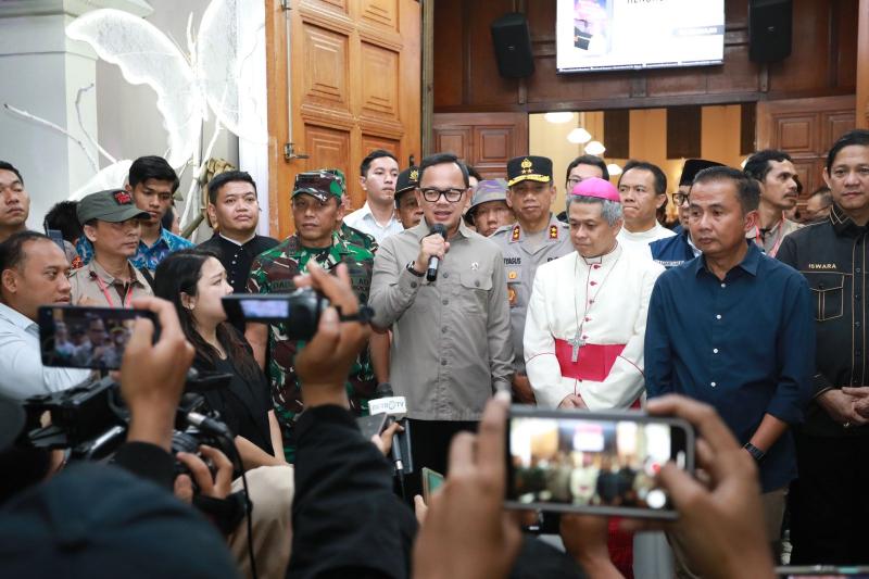 Bandung, INDONEWS.ID - Wakil Menteri Dalam Negeri (Wamendagri) Bima Arya Sugiarto meninjau sejumlah gereja di Bandung, Jawa Barat (Jabar), Selasa (24/12/2024). Gereja tersebut yakni Gereja Katolik Katedral Santo Petrus Bandung dan Naposo Huria Kristen Batak Protestan (NHKBP) Bandung Riau Martadinata.