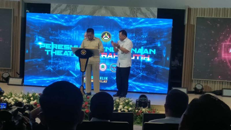 "Theater Merah Putih" dan pembangunan sistem aplikasi One Klik Badiklat, langsung di resmikan dan diluncurkan oleh Wamenhan, Donny Ermawan T., M.D.S., M.S.P, dengan didampingi oleh., Kabadiklat Kemhan Mayjen TNI Zainul Arifin, S.A.P., M.Sc., Rabu, 8 Januan 2025 di Gedung Martha Christina Tiahahu, (MCT) Pusdiklat Tekfunghan Badiklat Kemhan, Ji Salemba i No. 25 Jakarta Pusat
