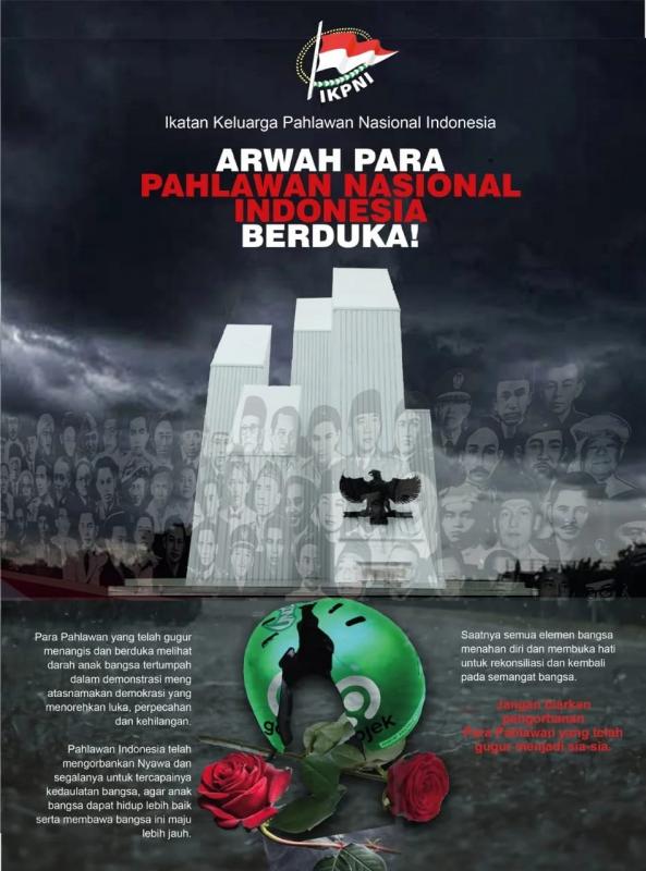 Jakarta, INDONEWS.ID - Organisasi yang menaungi keluarga para Pahlawan Nasional, Ikatan Keluarga Pahlawan Nasional Indonesia (IKPNI) menyampaikan rasa duka cita dan keprihatinan yang mendalam atas peristiwa demonstrasi di Jakarta maupun di beberapa daerah baru-baru ini. Demonstrasi ini telah menimbulkan korban jiwa, luka-luka, serta trauma sosial yang luas di tengah masyarakat.