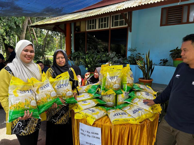 PTPN IV Regional 4 Jambi, menjual beras SPHP ukuran karung 5 kilogram seharga Rp 60.000 di halaman kantor Desa Markanding pada Selasa (30/9/2025). Beras yang dijual mencapai 2 ton untuk pembeli warga desa Markanding dan sekitarnya