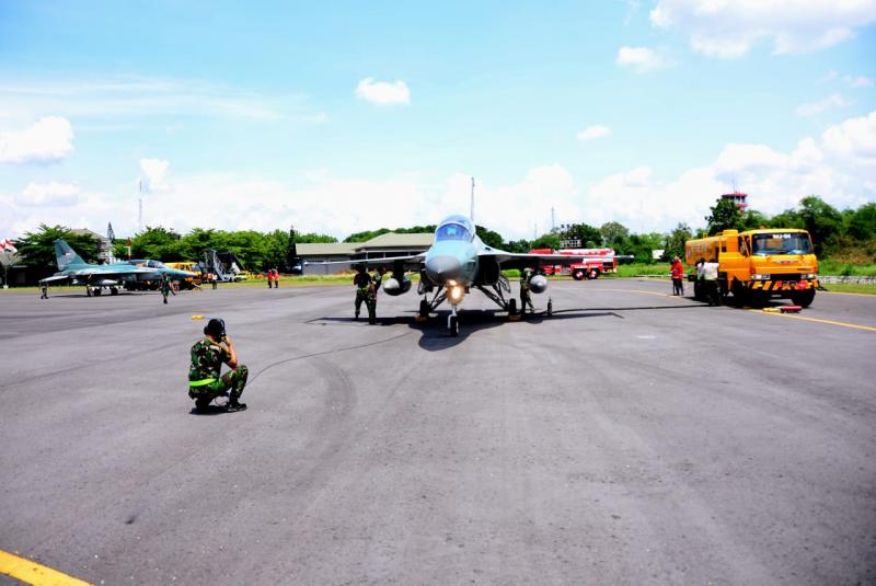 Magetan, INDONEWS.ID - Sejumlah pesawat tempur F-16 Fighting Falcon dan T-50i Golden Eagle melakukan Hot Pit Refueling dalam Mission Oriented Training (MOT) 2025 di Main Apron Lanud Iswahjudi, Magetan, Senin (3/11/2025).