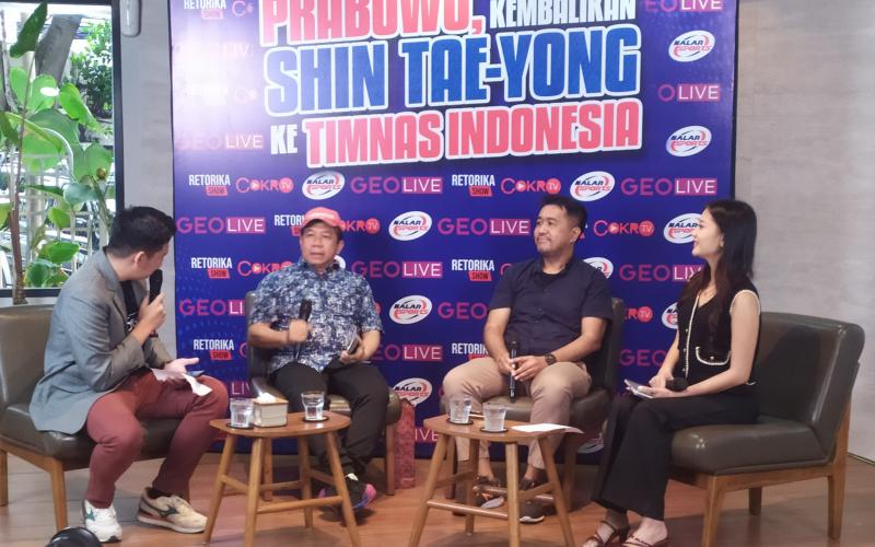 Jakarta, INDONEWS.ID - Cokro TV, Nalar Sports TV, Geo Live, dan Retorika Show menggelar diskusi publik bertajuk “Pak Prabowo, Kembalikan STY ke Timnas Indonesia”. Diskusi ini dipandu oleh dua moderator, yakni Noella Sisterina dan James Purba, serta menghadirkan sejumlah narasumber yang kompeten di bidangnya.