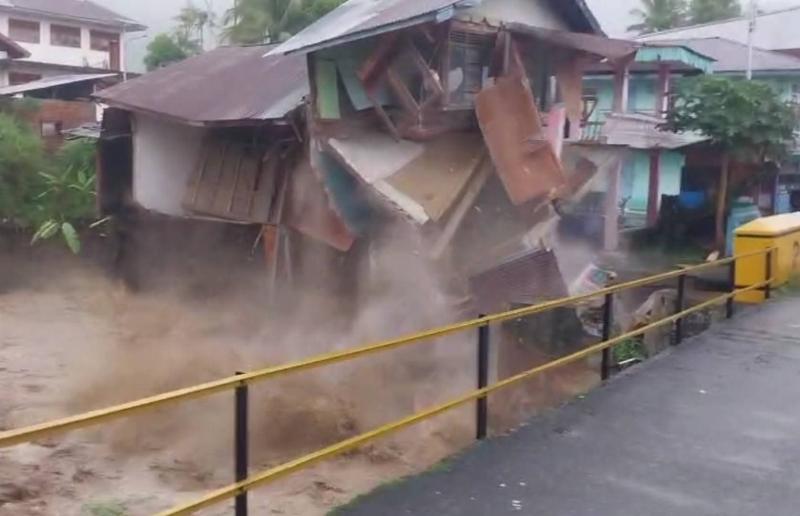 Akibatnya Rumah milik Bismi Hayati (53) yang dihuni bersama dua anaknya roboh terseret arus. Selain itu, satu jembatan hanyut dan beberapa titik jalan provinsi rusak parah