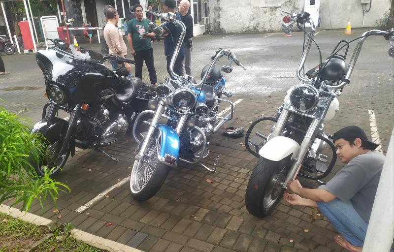 Buat mereka Warsol bukan sekedar tempat istirahat, tapi juga tempat bertukar pengetahuan terkait tunggangan mereka, atau untuk cek kondisi motor. Halaman luas yang disediakan Warsol dimanfaatkan para komunitas untuk bengkel dadakan, seperti salah satu anggota chapter Depok yang merasa ban depannya kurang nyaman.
