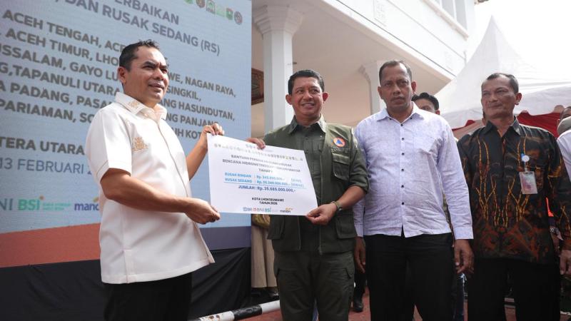 Di Provinsi Aceh, bantuan diberikan kepada 15.789 kepala keluarga dengan total nilai sekitar Rp341,7 miliar, mencakup 8.796 rumah rusak ringan dan 6.993 rumah rusak sedang yang tersebar di sembilan kabupaten/kota.