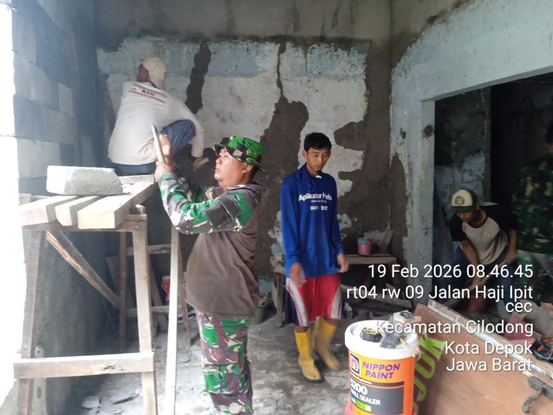 Depok, INDONEWS.ID - Program rehabilitasi rumah tidak layak huni (RTLH) dalam kegiatan TMMD Ke-127 Tahun Anggaran 2026 yang dilaksanakan Kodim 0508/Depok menunjukkan progres signifikan. Memasuki hari ke-9 (H+9), Kamis (19/2/2026), tiga unit rumah warga di Kelurahan Sukamaju, Kecamatan Cilodong, Kota Depok, rata-rata telah mencapai hampir 50 persen pengerjaan.