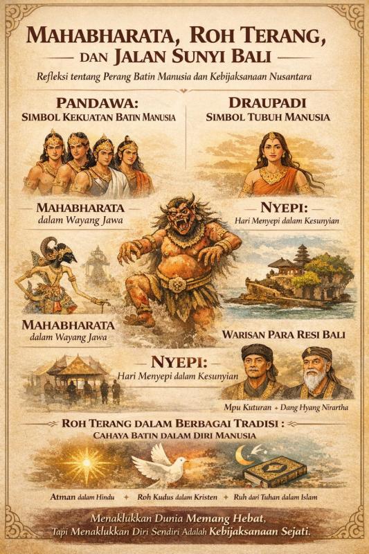 Salah satu cermin kebijaksanaan itu dapat kita temukan dalam epos besar Mahabharata. Banyak orang melihatnya sebagai kisah kepahlawanan para ksatria dan perang besar antara keluarga Pandawa dan Korawa.