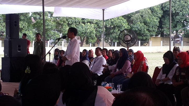 Jakarta, INDONEWS.ID -- Presiden Joko Widodo blusukan ke Lapangan Sepakbola Gongseng, Ciracas, di Jakarta Timur, Kamis (10/1/2019) sore. Presiden meninjau langsung usaha para ibu dalam program Membina Ekonomi Keluarga Sejahtera (Mekaar) binaan Permodalan Nasional Madani (PNM).