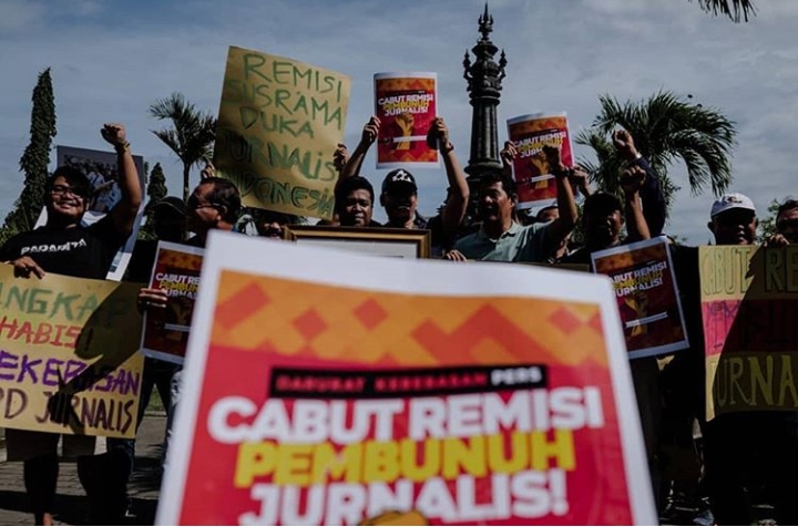 "Aksi solidaritas ini meminta Presiden Jokowi untuk mencabut remisi tersebut. Karena remisi ini menjadi ancaman serius bagi kebebasan pers Indonesia. Karena tidak akan ada demokrasi tanpa kebebasan pers," kata Koordinator aksi, Zaini Zain.