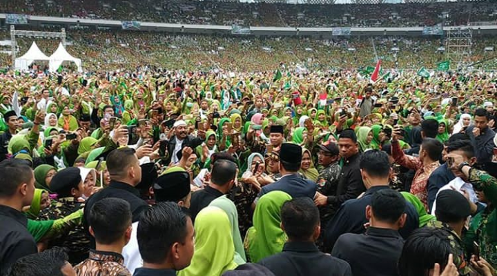 Jam`iyyah ibu-ibu Muslimat Nahdatul Ulama (NU) se-Indonesia memenuhi Stadion Utama Gelora Bung Karno Jakarta sejak Sabtu (26/1/2019) petang.
