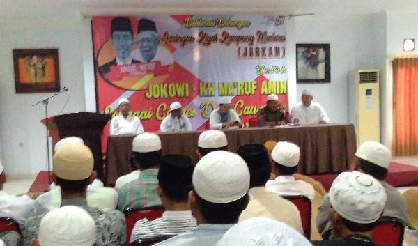 Jaringan Kyai Kampung Madura (Jarkam) mendeklarasikan dukungan untuk pasangan Jokowi -KH. Ma’ruf Amin sebagai Capres-Cawapres dalam Pilpres 2019 mendatang. Acara deklarasi ini dilakukan secara sederhana, yaitu ditandai oleh adanya ritual khusus berupa doa dan yasinan, di Madura, Sabtu (9/2/2019).