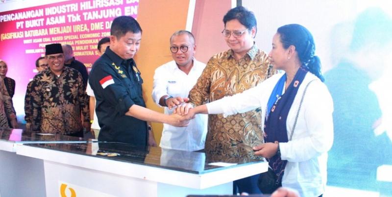 Kegiatan pencanangan ini, turut pula dihadiri Menteri BUMN Rini Soemarno dan Menteri ESDM Ignasius Jonan. Dalam rangkaian acara, Menteri Airlangga juga berkesempatan menandatangani prasasti pencanangan Bukit Asam Coal Based Special Economic Zone (BACBSEZ).