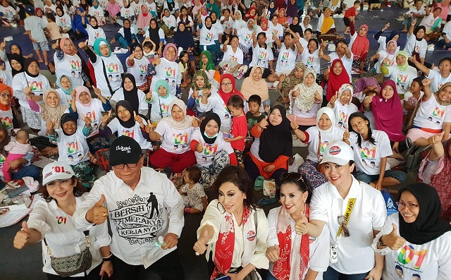 Jakarta, INDONEWS.ID -- Organisasi relawan Perempuan Tangguh Pilih Jokowi-Amin (Pertiwi) dan Alumni SMA Jakarta Bersatu (ASJB) mengadakan kampanye bersama dengan menggelar Bazaar sembako murah di Desa Grogol Kecamatan Limo, Cinere, Depok Jawa Barat. Penyelenggaraan bazaar sembako murah dalam kolaborasi kampanye ini memberikan kesempatan masyarakat yang ada di sekitarnya, seperti Meruyung, Grogol, Krukut, untuk membeli bahan pokok dengan harga murah dan terjangkau.