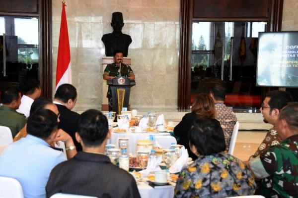“Saya yakin kita semua memiliki perhatian dan pandangan yang sama terkait perlunya sinergi demi masa depan dan kemajuan NKRI”, kata Panglima TNI, Marsekal TNI Hadi Tjahjanto, S.I.P. pada acara coffee morning dengan Komunitas Telekomunikasi dan Informatika (Telematika) di Gedung Soedirman Mabes TNI, Cilangkap, Jakarta Timur, Kamis (21/3/2019).