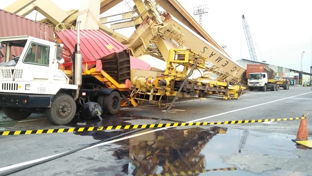 Kejadian tersebut disebabkan kapal peti kemas MV Soul of Luck yang akan sandar di dermaga internasional TPKS membentur CC. Satu CC tersebut yang kini rusak yaitu CC nomor 3 yang berada di posisi paling ujung di dermaga.