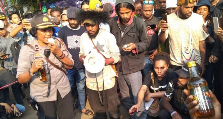 Jakarta, INDONEWS.ID -Kejadian tidak pantas diduga dilakukan oknum polisi dengan memberikan dua dus minuman keras (miras) ke sekretariat Ikatan Mahasiswa Tanah Papua di kawasan Cilaki, Kota Bandung (22/8) sangat disayangkan. Dugaan pemberian miras ini bertepatan dengan aksi yang digelar mahasiswa Papua di depan Gedung Sate. Bahkan karena tidak senang dengan pemberian miras ini, mahasiswa Papua mengembalikan langsung miras tersebut kepada oknum polisi yang bersangkutan di sela-sela berlangsungnya aksi.