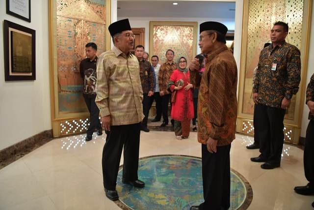 Jakarta, INDONEWS.ID - Wakil Presiden (Wapres) Jusuf Kalla menjenguk mantan Presiden ke-3 Republik Indonesia, Bacharuddin Jusuf Habibie Habibie yang tengah dirawat di RSPAD Gatot Subroto, Jakarta, Selasa (10/9/2019).