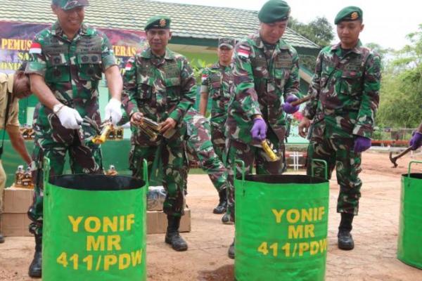 Satgas Pamtas RI-PNG Yonif 411 Kostrad Musnahkan 1.236 Botol Miras Ilegal