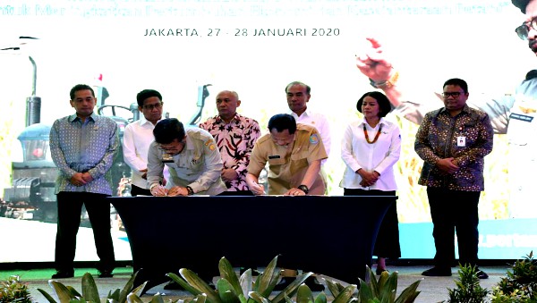 Jakarta, INDONEWS.ID - Menteri Dalam Negeri (Mendagri), Tito Karnavian menghadiri Rapat Kerja Nasional Pembangunan Ekonomi sekaligus melakukan Penandatangan Adendum Nota Kesepahaman antara Menteri Dalam Negeri (Mendagri) dan Menteri Pertanian (Mentan) terkait Koordinasi Tugas dan Fungsi Kementerian Dalam Negeri dan Kementerian Pertanian. Penandatanganan nota kesepahaman ini dilakukan di Hotel Bidakara, Jakarta Selatan, Senin (27/01/2020) kemarin.