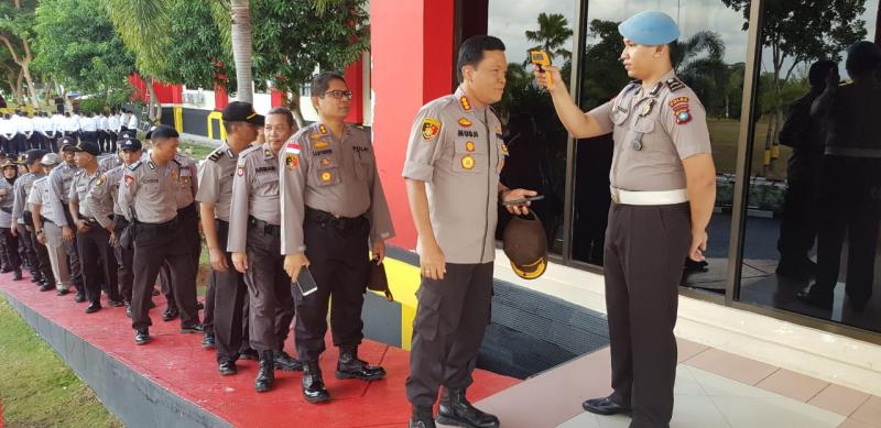 Personel Polda Kepri Jalani Pemeriksaan Suhu Tubuh