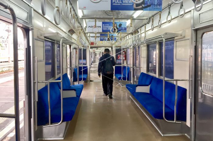 Di beberapa moda angkutan massal seperti Kereta KRL juga nampak lengang.
