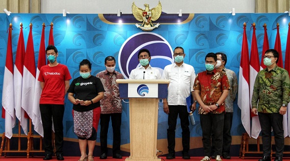 Menteri Kominfo mengadakan konferensi pers secara online bersama Direktur Jenderal Aplikasi Informatika Semuel Abrijani Pangerapan; Chief of Public Policy and Goverment Relation Gojek Sintho Nugroho; Co-founder and Vice-Chairman Tokopedia Leontinus A. Edison; CEO Bukalapak Rachmat Kaimuddin; CEO Halodoc Jonathan Sudharta; Co-Founder/ Chief of Product and Partnership Ruangguru Iman Usman; serta Head of Public Affairs Grab Indonesia Tri Sukma Anreianno.