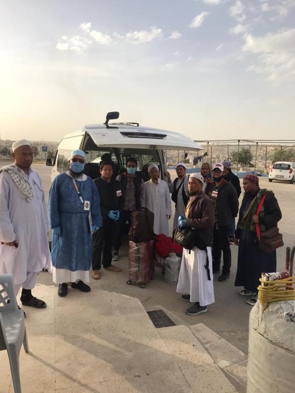 Setelah memperoleh informasi tentang keberadaan mereka, staf KBRI Amman kemudian mengunjungi dan bertatap muka untuk menanyakan keadaan para jamaah. Selain jamaah dari Indonesia, juga terdapat jamaah dari Pakistan dan Bangladesh. Pada kunjungan tersebut, para jamaah juga memperoleh paket bantuan medis, makanan dan pulsa elektronik.