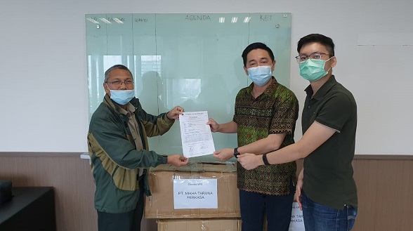 Bantuan APD dari PT Mikha Taruna Perkasa berupa hazmat suit dan shoes cover 400 set, masker bedah 4.000 buah, pelindung mata tipe 1 52 buah dan tipe 2 berjumlah 198 serta pelindung wajah 150.