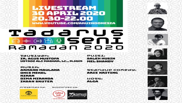 Jakarta, INDONEWS.ID - Acara livestream bertajuk "Tadarus Seni Ramadan 2020" akan berlangsung Kamis malam, 30 April 2020, tepatnya pada pukul 20.30 hingga 22.00 WIB melalui www.youtube.com/AKUINDONESIA.