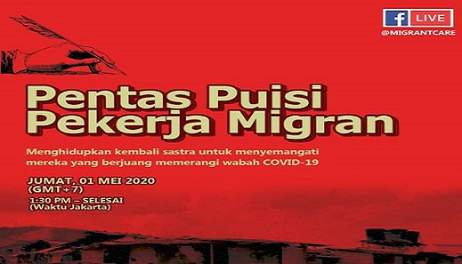 Bertajuk ‘Pentas Puisi Pekerja Migran’ acara ini akan disiarkan secara langsung pada tanggal 1 Mei, pukul 13.30 (waktu Jakarta) melalui akun Facebook Migrant CARE.