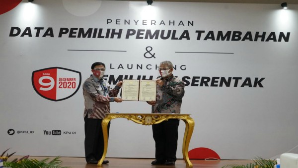 Kementerian Dalam Negeri (Kemendagri) menyerahkan Daftar Penduduk Potensial Pemilih Pemilihan (DP4) Pemilih Pemula kepada Komisi Pemilihan Umum (KPU).